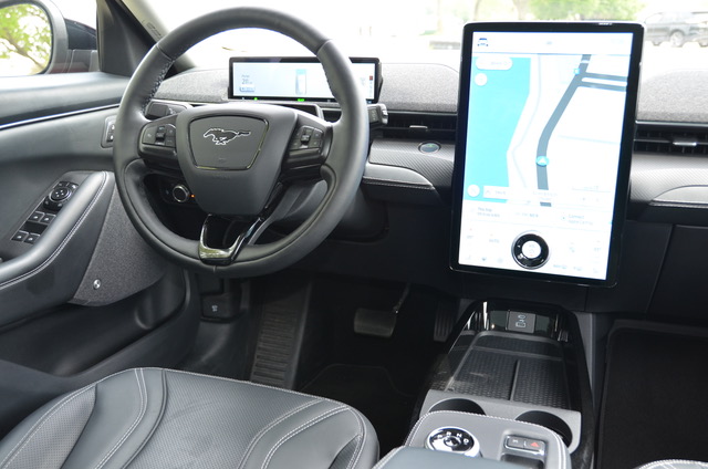 There’s a lot to like about the Mach-E. Opinions being what they are, my wife wasn’t fond of the large touchscreen. I’m more familiar with seeing them, so I was more accepting. Electronic push-button door releases are used to open the doors from the outside. Push the button and the door opens a couple inches. The front doors have slim pull handles; the rears have none. I thought the ride was a bit too firm. The 55-series tires on 19-inch wheels fitted to the car I drove have a 39psi recommended cold inflation pressure. The onboard TP readout showed them above that at 43 psi when cold. Perhaps that had an influence. Ride height is 5.8 inches, so a bit of unpaved road or deep snow driving should be fine.