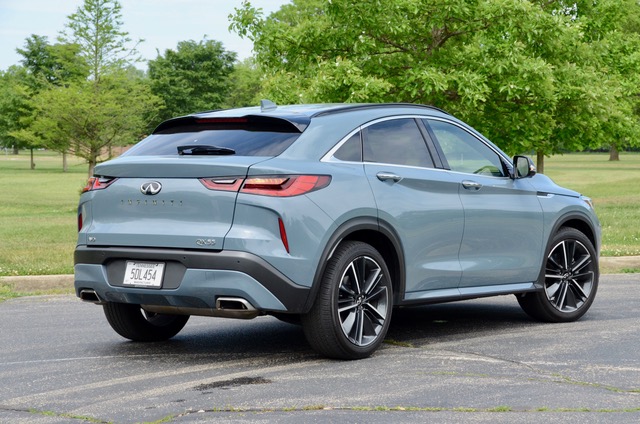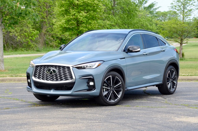 Sloping rooflines are what’s happening in the world of premium utility vehicles. And, Infiniti is right there in the mix with its all-new coupe-like QX55