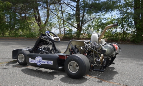 To demonstrate the viability of hydrogen fuel powering the X-Engine, the LiquidPiston team modified its 4.5 lb X-Engine (core) to run on hydrogen. The engine was then installed in a hybrid-electric configuration on a go-kart, which was originally powered by a 39-pound gasoline engine. The hybrid approach combines the benefits of hydrogen power with the benefits of electric power, and can enable regenerative braking, where the simple act of braking works to recharge the go-kart’s battery, allowing for longer travel times between refueling stops.