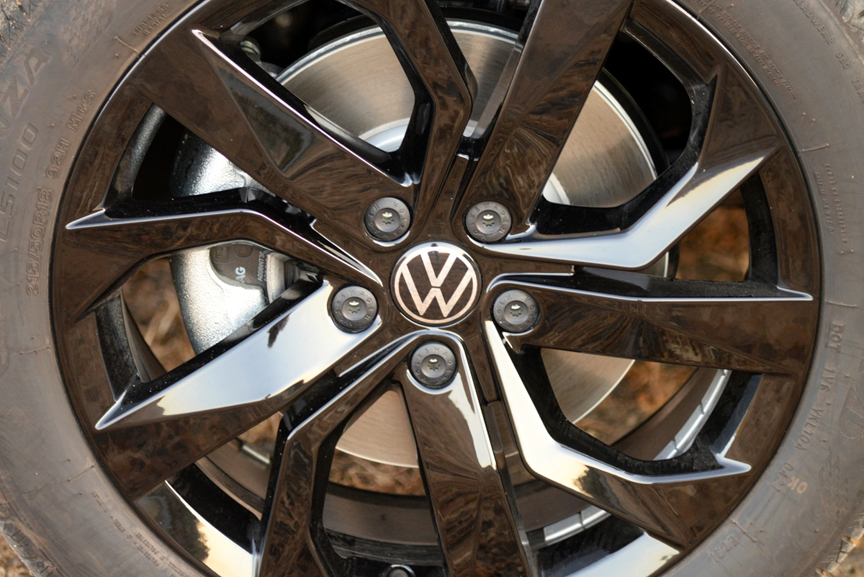 The Taos, like so many other VW products, is based on the company's MQB platform which serves as the foundation for everything from sedans to SUVs. VW builds two varieties of Taos. The front-wheel-drive version we tested connects an 8-speed automatic transmission to a 158hp turbocharged, 1.5 liter inline 4. An all-wheel-drive Taos is also available. This one connects the same engine to a DSG dual-clutch 7-speed gearbox. The FWD Taos utilizes a torsion beam rear axle while the AWD model is equipped with a fully independent multi-link rear suspension system. Various equipment levels of both models start cheap but get expensive fast. Our top echelon FWD Taos SEL trimmed the front seats with Vienna leather, added dual zone Climatronic air conditioning, rain sensing wipers, park distance control assist, and 18 inch black aluminum alloy rims shod with 215/50R18 Bridgestone Turanza LS100 radials with a treadwear rating of TW 560.