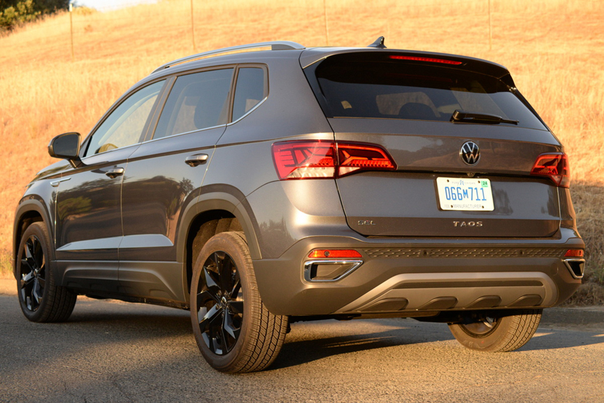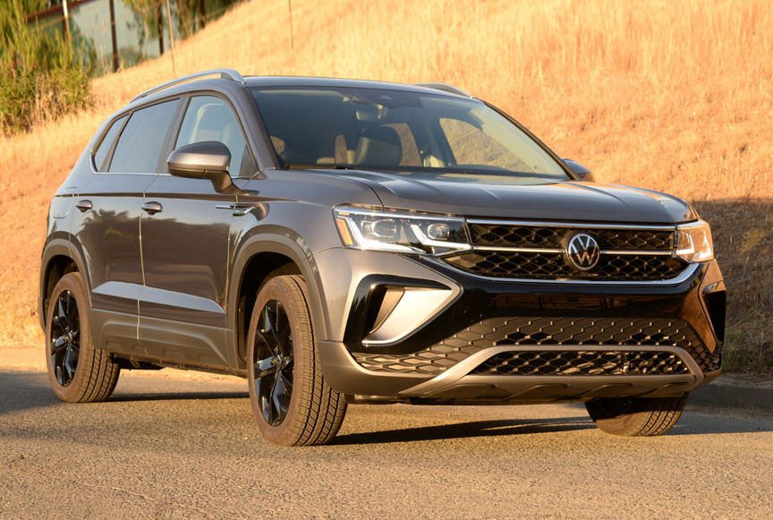 VW's ever expanding SUV family is starting to look like those generational rear window decals showing baby at one end and gramps at the other. For 2022, VW's new baby is the Taos, which slots into the leadoff spot formerly occupied by the Tiguan. In 2018, VW drastically upsized the Tiguan from subcompact to compact plus, a move which left room for introduction of an all new subcompact sibling called Taos. Actually, the Taos is just over an inch wider and longer than the original Tiguan, so it feels quite spacious inside. Adding to that airy impression of our test vehicle was a $1,200 power tilting and sliding panoramic sunroof. This was the only option tacked onto the $31,490 base price of our platinum gray metallic Taos SEL.