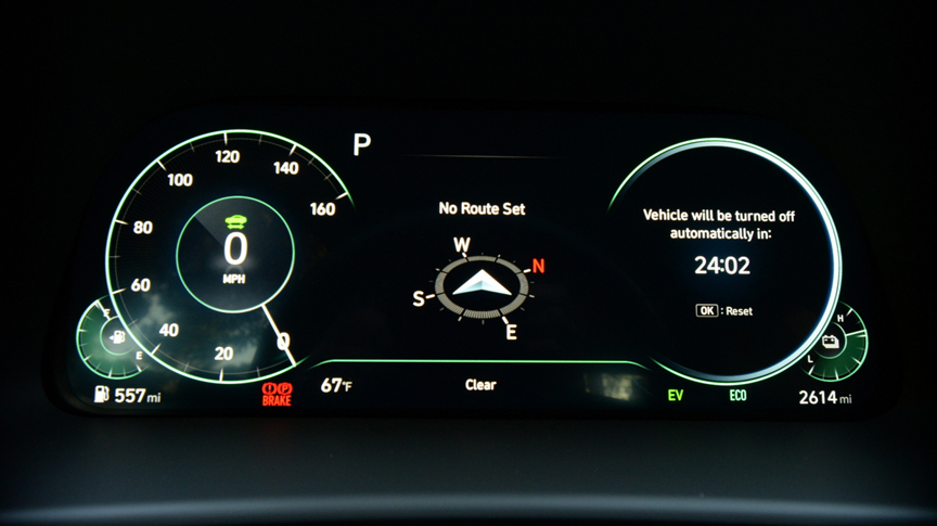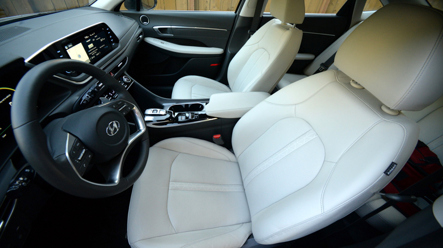 Hyundai provides the Sonata Limited with a rather too-full bevy of safety measures. Some of them we really found innovative, like the inclusion of lane traffic warnings in the head-up display. With this information available in your direct line of sight, you don't need to look for it in your mirrors (where it is duplicated). Some nannies were a little over the top, like the warning buzzer that alerts you to the proximity of every large rock in your driveway. All in all, though, the Hybrid Sonata is a torrid deal for the money.