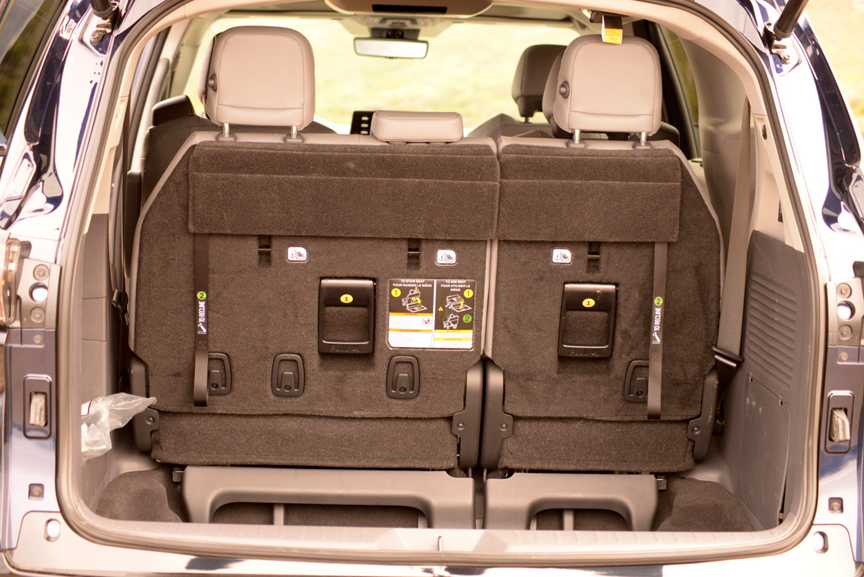 The most appealing aspect of life with Sienna was its vast interior storage space, augmented by the variety of ways that bounty could be subdivided. If you like to take your bicycle along for the ride, there's no better method of transport than to lock it in a Sienna. It took a bit of logic augmented by some owner's manual consultation to figure out how to convert the 7-seat interior to delivery truck configuration. The two second row captain's chairs need to be shifted fully forward with their back tilted to the front and locked. The split rear bench seats fold themselves flat into the deep rear storage well, Doing so opens up a vast amount of space measuring 75.2 cubic feet. Hoisting a bike into that cavern is so easy it makes you never want to deal with the same chore in any high transom SUV again. Dark tinted rear windows and privacy screens protect your treasure from prying eyes.