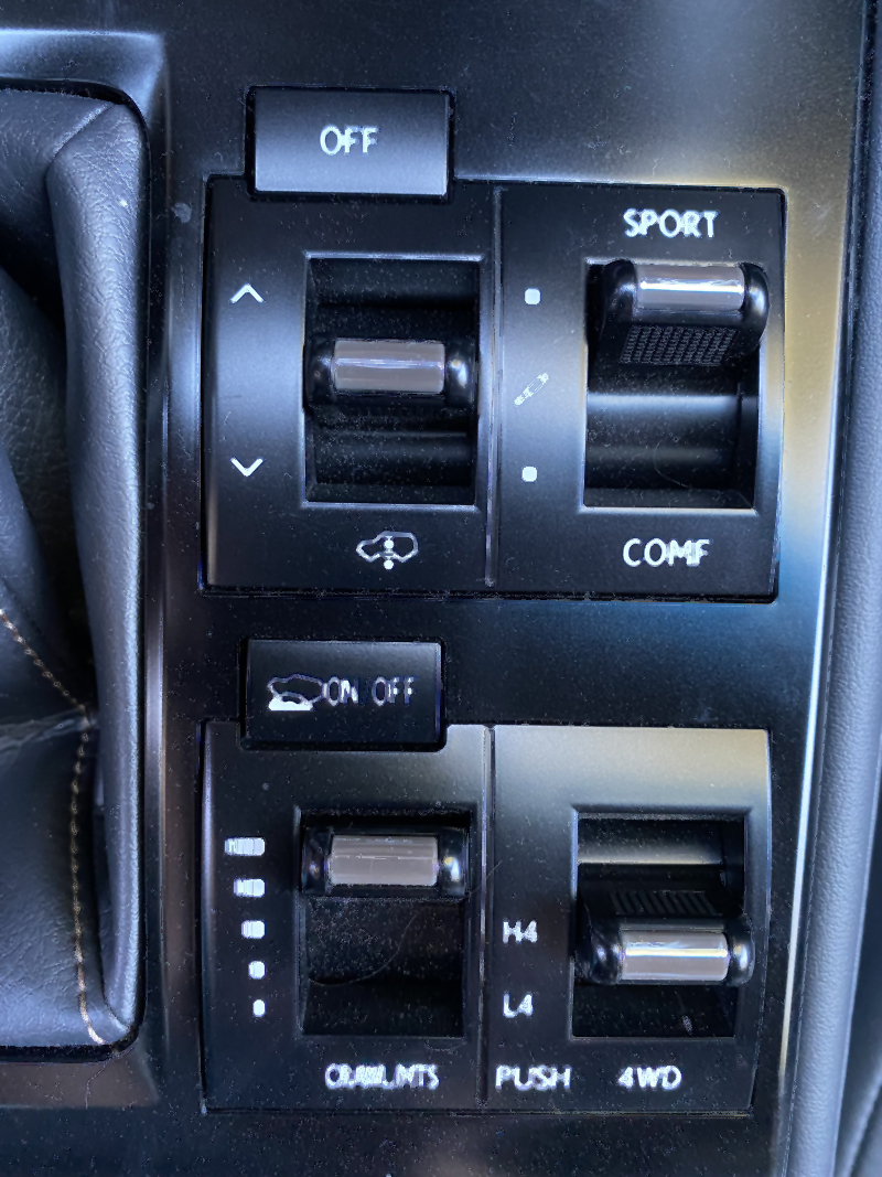 And drive mode and clearance controls within easy reach next to the shifter.