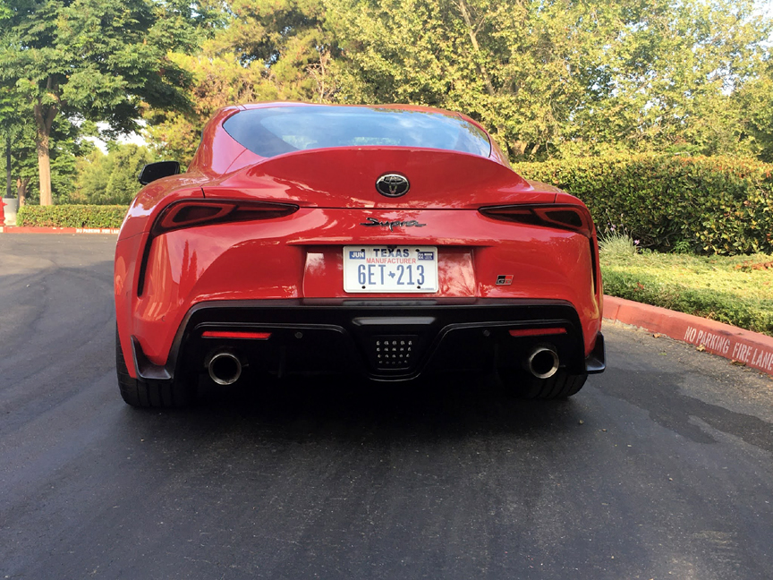 Is the Supra quick and fast? Do bears do their business in the woods? Car and Driver says the Supra 3.0 hits 60 mph in 3.8 seconds, does the quarter mile in 12.1 seconds, and tops out at a computer limited 160 mph. I did not put a stopwatch to the Supra but on a relatively short on-ramp (maybe a 1/8 mile?) from a dead stop until merging into traffic I saw 94 mph! For the first time in a long time I had to brake to merge.