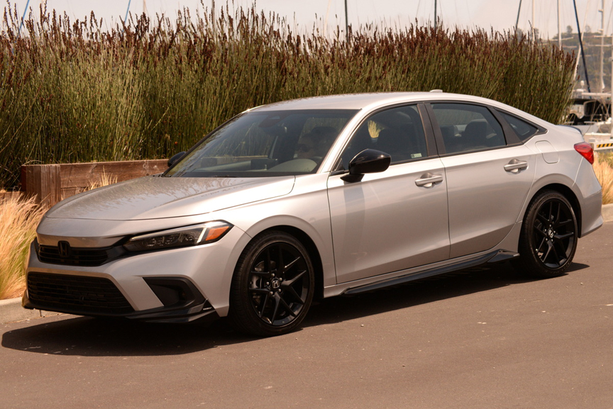 Honda has come up with the perfect ride for your son or daughter's first new car. It will even work wonders for you. The completely revamped eleventh generation Civic has just begun arriving at Honda dealerships. And the best looking one of the bunch is the Civic Sport, which carries a shockingly affordable base price of $23,100. Our test model was finished in a subtle shade called Lunar Silver Metallic, which played nicely off the Sport's satin black exterior trim and racing striped cloth and vinyl interior.