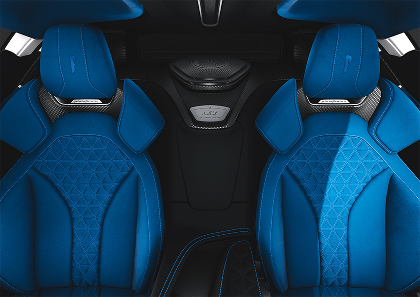 Following Automobili Pininfarina's 'Pure Sound' philosophy, the soundscape has a core frequency of 54 Hz, an organic frequency that is a multiple of 432 Hz – known as 'Verdi's A,' conceived by famous Italian composer Giuseppe Verdi. The distinctive aural signature is tailored for the most powerful road-legal Italian sports car ever produced.