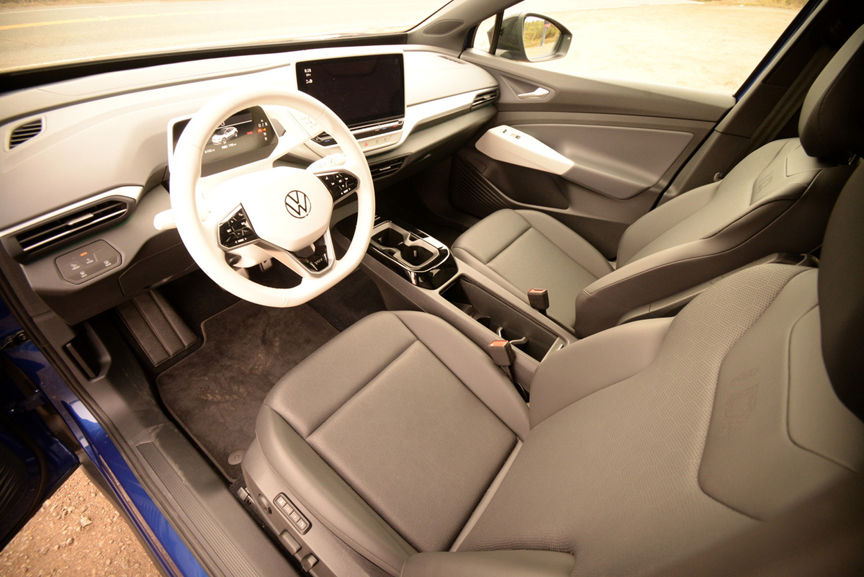 Driving the ID.4 is equally off-putting to someone used to being in control of their immediate automotive environment. The fun and games begin when you approach this VW with the key fob in your pocket. As the door automatically unlocks you slide into the seat to discover that the ID.4 is ready to drive off without any further intercession by you. VW calls this parlor trick "waking up" because the car senses your presence and intuitively starts. This disconcerting trait requires a willing suspension of disbelief on the part of the operator, who may not be mentally prepared to drive off just yet. As a sop to normalcy, VW does equip the ID.4 with a Stop/Start button on the steering column, which the company claims you should never need in normal operation.