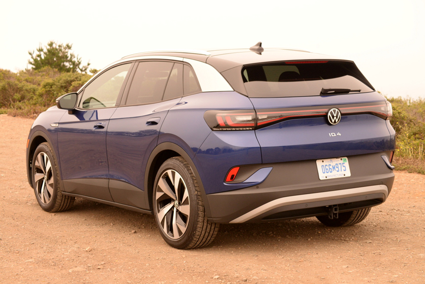 Enter the 2021 ID.4, the first VW designed from the ground-up as an electric car. Although the debutante is available in several levels of trim (Pro, Pro S and 1st Edition), the one to own this year is the "1st Edition." You'll know it from afar because it sports chrome plated insignias on both flanks reading "1st." The most noticeable benefit of selecting this celebratory offering is a set of staggered width 20 inch alloy rims wrapped in hard (TW 580) Bridgestone Alenza A/S rubber (235/50R20 front;255/40R20 rear). These dazzlingly spoked wheels do a great job of setting off the fetching lines of the new ID.4. And despite their long life treadwear rating, they also do a commendable job of clipping apexes on challenging two lane country roads.