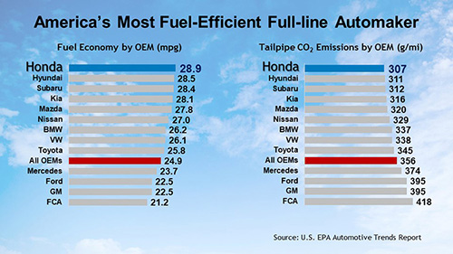 Honda already holds the distinction of being America’s most fuel-efficient, low-emissions full-line automaker, according to the January 2021 U.S. EPA Automotive Trends Report. That means our existing vehicle fleet has the lowest CO2 emissions of any full-line automaker. But the future direction of environmental requirements is not low CO2 emissions, it’s zero CO2 emissions.