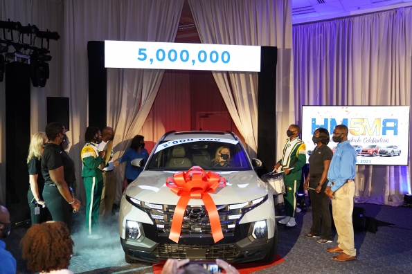MONTGOMERY, Ala., Aug. 12, 2021 –Hyundai Motor Manufacturing Alabama (HMMA) leadership, team members, and special guests today celebrated the 5 millionth vehicle built at Hyundai’s U.S. assembly plant. HMMA reached the 5 million mark in less than 17 years, starting production in May 2005.