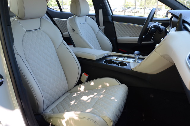 At a touch under 185 inches long the G70 makes for a great city/urban car where maneuvering in tight spaces is often the challenge. The front cabin is quite pleasurable for two. Ergonomics, sight lines, control and switch access are all to like. The rear seat is a bit tight for full-grown adults. The young ones will be fine.