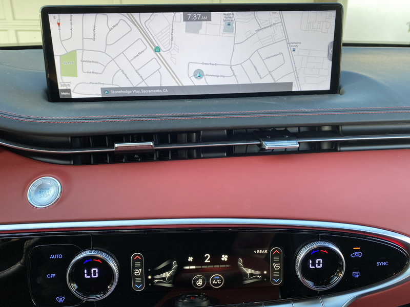The lengthy 14.5-inch infotainment touchscreen can be divided into sub-screens, but is most impressive with the navigation map, displaying a generous view to the left and right of the road you are on. For folks like yours truly who like to meander down roads untried, it's a pleasure.