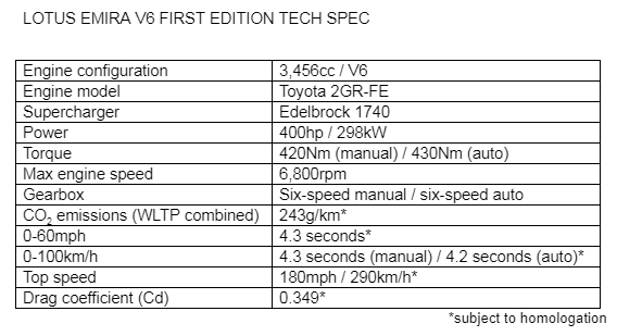 Lotus Confirms Full Specification and Price of All-New Emira V6 First Edition