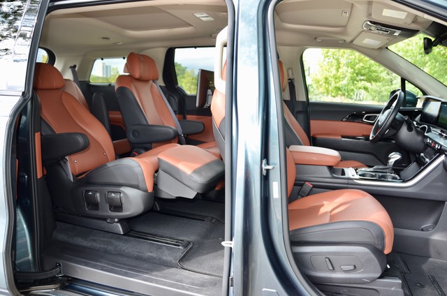 The Carnival is offered in LX, EX, SX, and SX Prestige trims. The LX is 7-passenger with an option for 8-passenger seating. EX and SX seat eight. SX Prestige seats seven and features new “VIP” Lounge seats that are heated/ventilated and have power recline and power-extending leg rests. The second-row seats in all trims are removable except for the VIP seats in the SX Prestige.