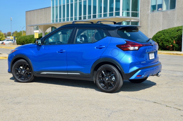 I got my kicks driving a Kicks SR finished in two-tone Electric Blue with Super Black roof at an extra cost of $250. Options on this Kicks included Rear Roof Spoiler Exterior Package that also includes crossbars and an exhaust finisher ($435), carpeted floor and cargo mats ($225), illuminated kick plates ($460), interior electronics package ($575) that includes 20-color ambient lighting, door pocket light and auto-dimming rear view mirror, black alloy wheels ($495) and the Premium Package ($1,200).