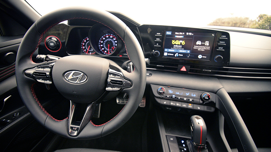 You might rightly expect to pay mid to high thirty thousand dollars for such a well conceived sport compact sedan, but you'd be way off the mark. The Elantra N Line starts at $24,250 for the 6-speed manual gearbox model. Our test car was equipped with the $1,100 optional 7-speed DSG dual clutch transmission with Shiftronic logic and Paddle Shifters. Out the door price on this combo was $26,360 including $1,100 for "Inland Freighting and Handling."
