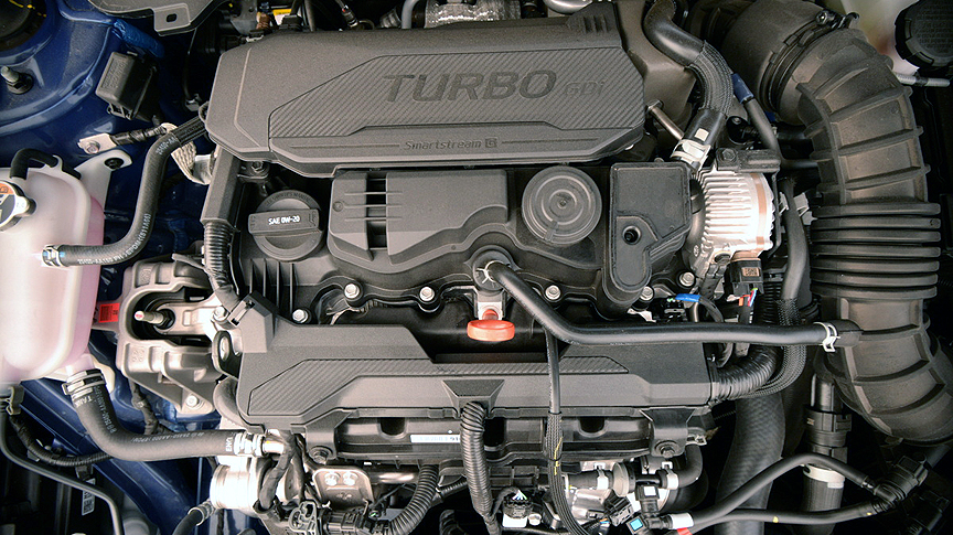 Instead of the somnolent 147hp engine powering all other forms of Elantra, the N Line motor, fitted with a turbo, bumps output by 54 ponies to 201hp. Torque production ramps up too, with a 63 pound boost from 132lb.-ft. in the stock Elantra to 195lb.-ft. in the N Line. Best of all, the N Line achieves peak torque at 1500 rpm and holds that value all the way to 4500rpm. The stock Elantra motor doesn't produce its measly peak torque of 132lb.-ft. until you spin it to 4500rpm. What all this means to you the driver is an instant surge of performance whenever you need it. The 0-60 mph run flashes past in 6.5 seconds and the standing start quarter mile takes less than 14.5 seconds. Top speed of the N Line is 125mph.
