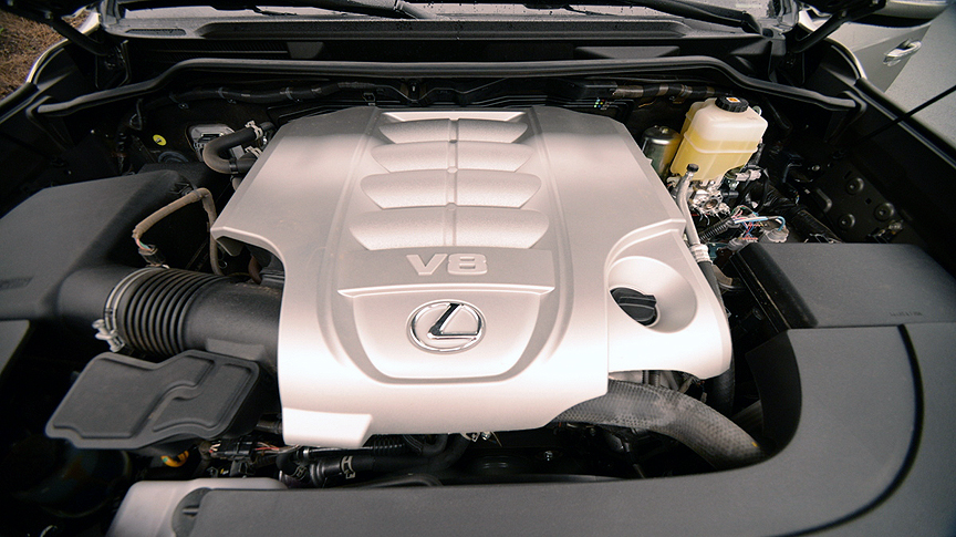 The LX570 is a hugely competent off road vehicle. Lexus has designed the drivetrain of this SUV to conquer the toughest terrain assignments you can throw in its path. Unlike lesser SUVs, this one offers a center lock differential, and a dial for height adjustment that would make low riders drool. Finally, the transmission offers five different pavement drive modes and no less than four different off-road drive modes. Is it any wonder that the LX570 is the optimal tool for the toughest driving assignments worldwide? Even though it weighs 3 tons, the LX570 is powerful enough to cut a 0-60mph time of 7.2 seconds and crank through the standing start quarter mile in 15.5 seconds at 91mph. To post these numbers, Lexus has endowed the engine compartment of the LX with their 383hp, 5.7 liter V8 which also makes a romping 403lb.-ft. of torque. Connected to a paddle-shifted 8 speed automatic gearbox, the LX will tow a 7,000lb trailer. However, the 24.5 gallon gas tank is good for a range of just 288 miles in city driving and 336 miles on the open highway.