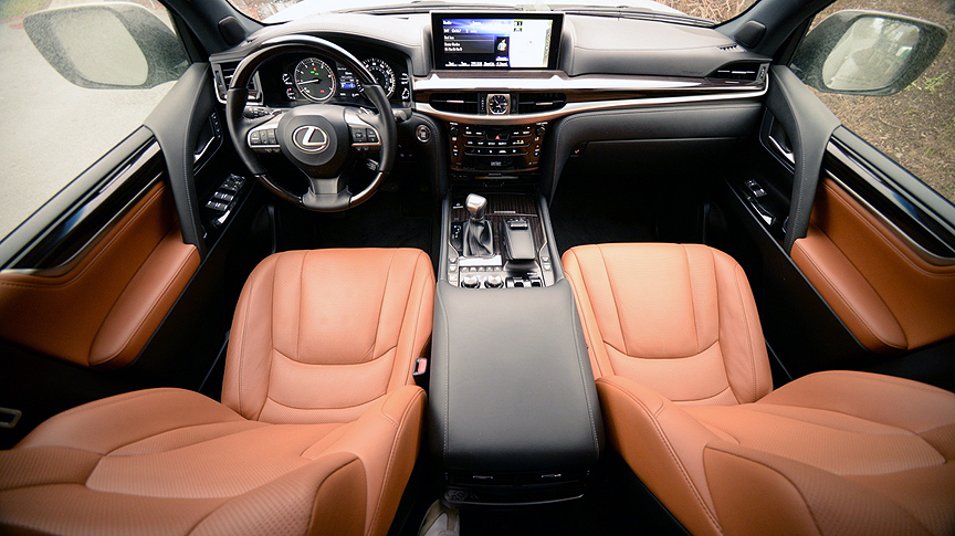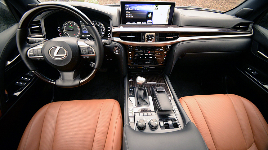 The bottom line on this vehicle mounts quickly. Considering that the top line is $91,580, prepare yourself for a substantial outlay here. In addition to the six grand Sport Package, our test LX featured three other expensive options. Most noticeable was the Luxury Package ($1,190) which upgrades the interior with semi-aniline leather and adds contrast stitching. This extra attention to detail made the warm caramel-colored seats of our test Lexus look and feel so inviting you never want to debark at trip's end. Also featured in the Luxury Package are heating and ventilation for four seats, plus four zone climate control