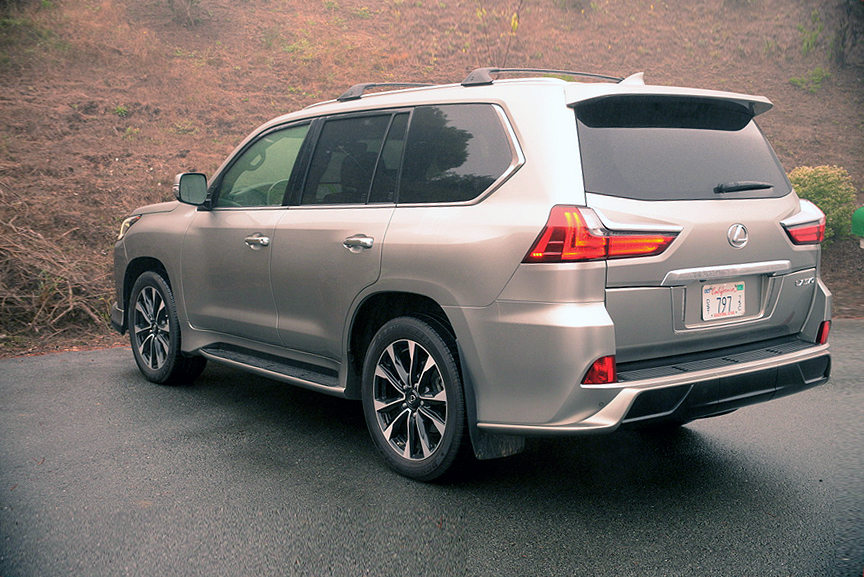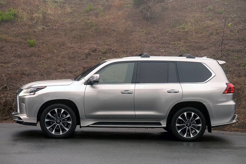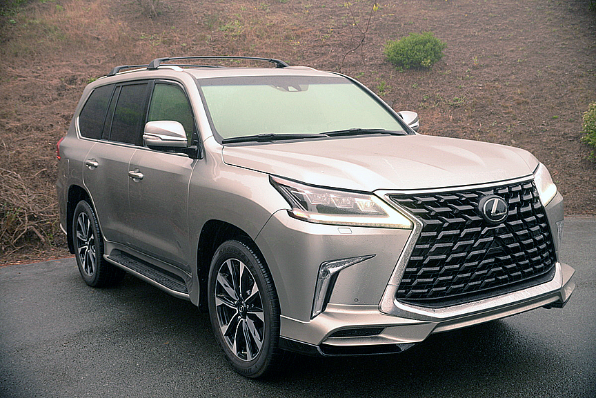 For 2021, the top drawer Lexus SUV, the LX570, has had a few new tricks added to its considerable repertoire of features. The test model we drove was equipped with the new-for-'21 Sport Package ($6,110), which replaces standard fitment wheels, nose and tail clips with alternate specification parts. Filling out the LX' fender arches are a visually riveting set of forged 21"x8.5" alloy rims with polished spokes. These mount trail rated Dunlop Grandtrek PT3A (275/50R21) radials. Oddly enough, if you stick with the standard 20x8.5 inch wheel, Lexus fits a 10mm wider tire (285/50R20) than the 21-inch offering.