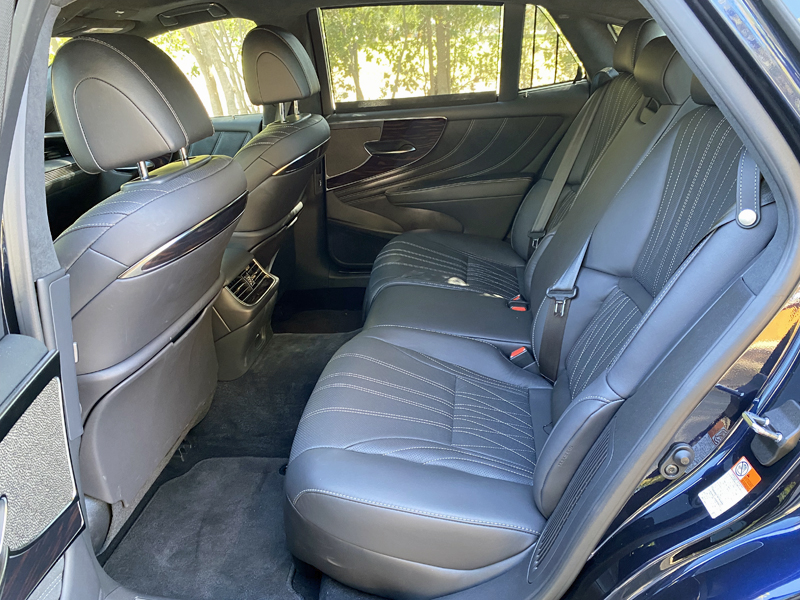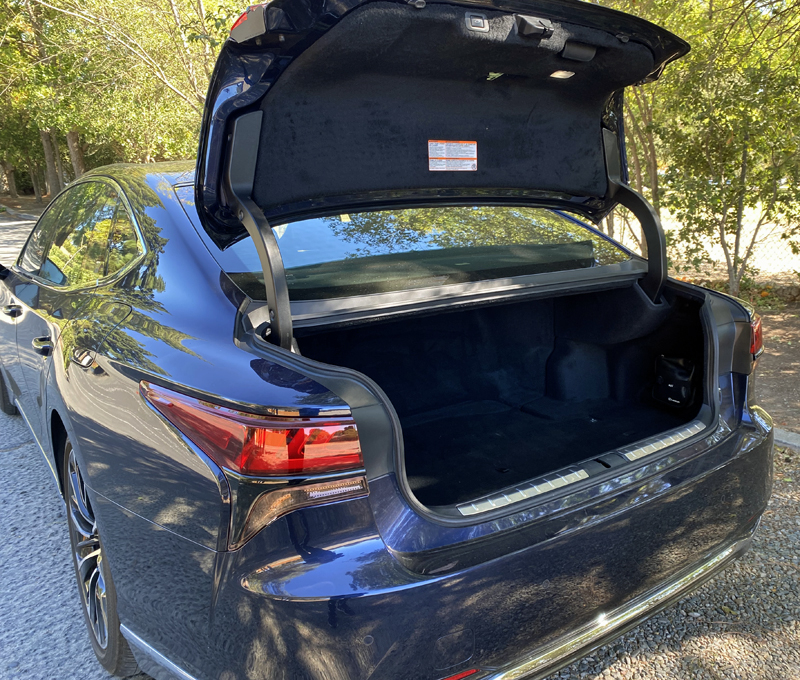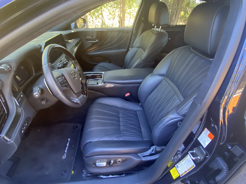The LS 500h has a 1.1-kwh lithium-ion battery pack working in tandem with a naturally-aspirated V-6 and a sophisticated gearbox. The combination gives 354 horsepower and decent fuel economy in the low 30's if driven without jackrabbit starts. There is also a new noise-cancelling system which makes its already quiet interior almost ominously quiet, but a pleasure for conversations or enjoying dynamic music. With the LS, the driving modes are really present and distinguishable. SPORT modes are tight, COMFORT mode is gentle and cozy.