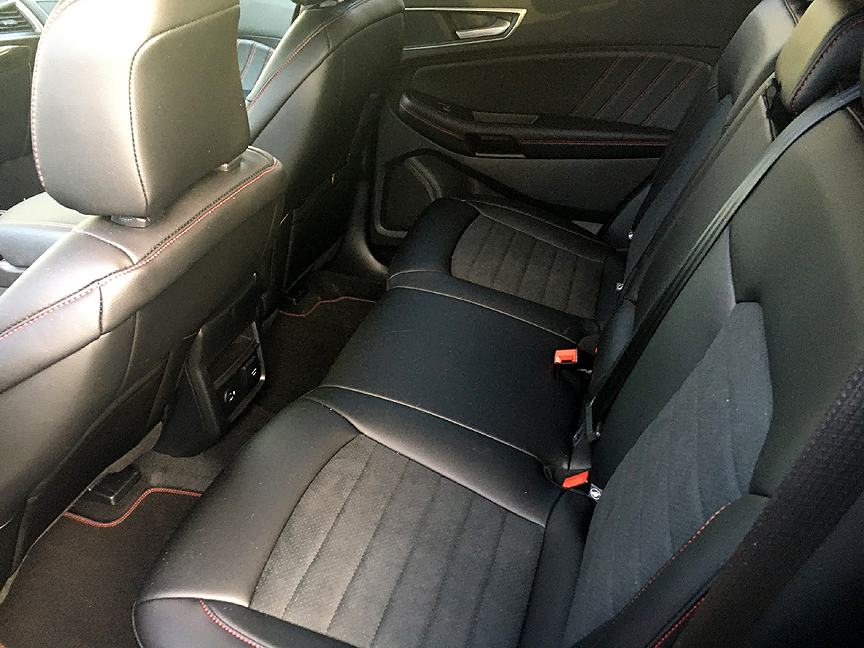 Two engines are available, the 2.0-liter in the test Edge or a 2.7-liter EcoBoost V6. Now I would never try to talk anyone out of a more powerful engine but out here in the real world the 2.0's 250 horsepower is darn impressive. Yes the V6's 335 is more but in the daily grind the 4-cylinder is great.