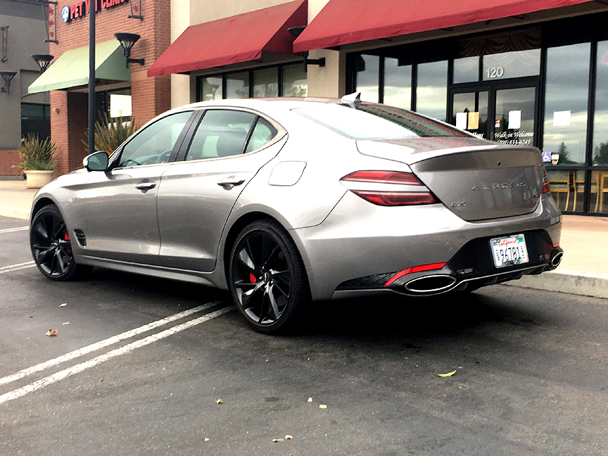 The G70 is not a big car, a Honda Accord is longer, and this for me is a huge plus. I like a car that will fit 4 adults (the G70 is rated as a 5-person car) but not impossible to park. At 184.4" in length it isn't small but 'right-sized' according to Bruce.