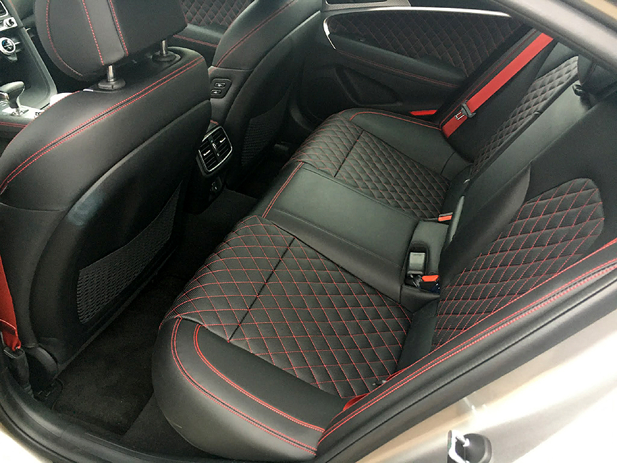 The interior is nice but not flashy (well except for the red seatbelts). I don't like nor need flash. I want an interior that looks good, is comfortable, won't show dirt easily, and if it does get dirty it should be relatively easy to clean.