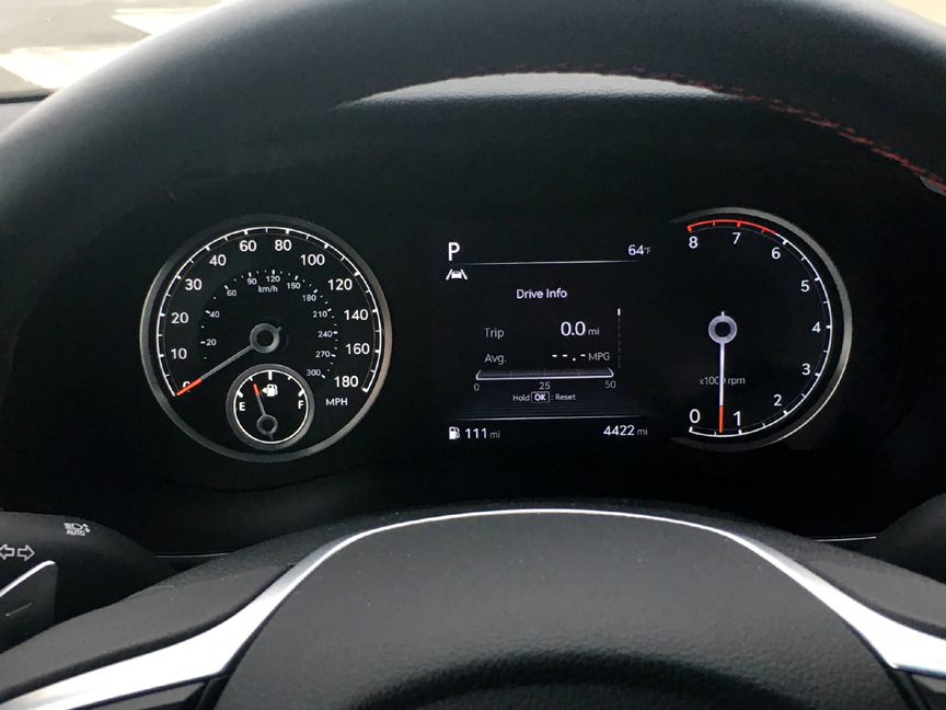 The G70 is available with two engines, a turbocharged 2.0-liter, 4-cylinder and a twin-turbocharged 3.3-liter V6. The four is okay, putting out 252 horsepower and returning better fuel economy. But the V6 is so sweet. So of course the test G70 had the V6.