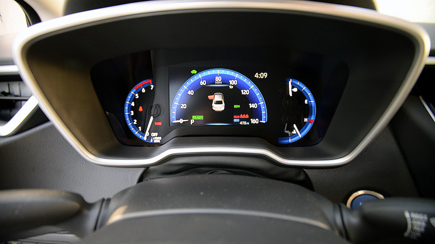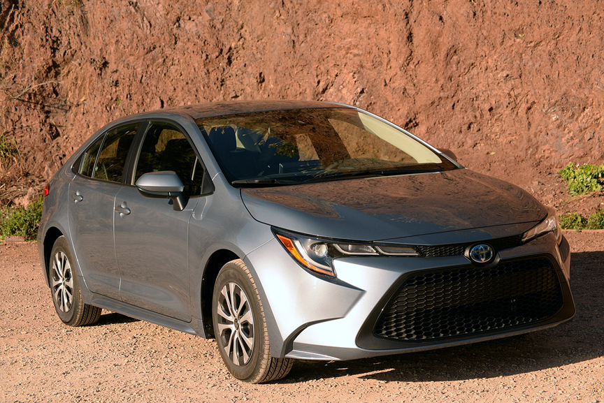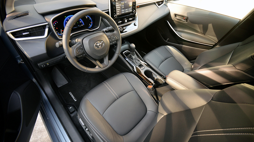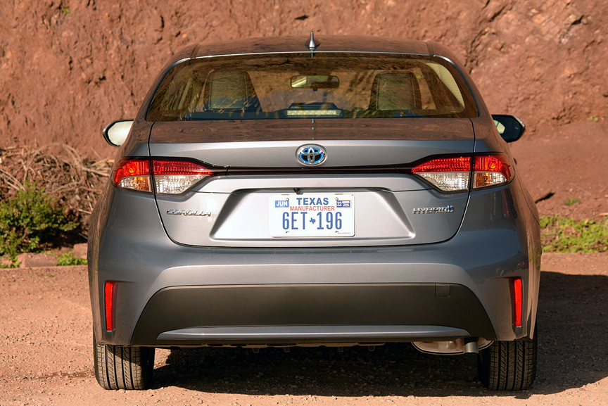 The most compelling aspect of Corolla design is the layout of the interior. The 8 inch color touchscreen operates without requiring an advanced degree from you in computer science. Both Android Auto and Apple CarPlay are supported by the system. The standard 6 speaker sound system does a great job of maximizing enjoyment of the free 3 month subscription to SiriusXM radio. In fact, at one point, we parked the Corolla in a shady spot overlooking San Francisco Bay and spent a relaxing hour in the Corolla cabin listening to some special shows on XM's "Fifties on Five" station. When the car isn't moving, you start to notice and appreciate some of the design subtleties that go into making a cockpit classy. Take the sun visors, for example. In an economy compact class vehicle, you wouldn't necessarily expect to find visors that not only pivot, but also offer lengthy pull-out tabs to extend coverage. Both front visors also include illuminated mirrors on their backsides. Although the hybrid is only available in the utilitarian LE trim level, you won't find yourself wanting for much here if you upgrade to the Premium Interior Package. LED headlights are standard, as are keyless entry and start, an in-car Wi-Fi hotspot, automatic climate control, and voice recognition. This hybrid proves that life in the slow lane need not be uncomfortable.