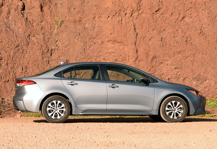 Pop the hood on this Corolla and you'll see an advanced hybrid motor that is strictly 2022. But look under the fender wells and you'll find wheels and tires that are so 1975. The latest Corolla hybrid is a perplexing study in contrasts. On the one hand, you've got a Prius-quality hybrid engine that has been refined by decades of development. In the new Corolla, it tops the charts for efficiency with an overall fuel economy rating of 52MPG. But to get those MPG figures, Toyota installed a set of small and narrow 6.5Jx15 inch alloy rims fitted with tall sidewall Yokohama Avid tires (195/65R15) that make the otherwise stylish Corolla look awkward and geeky.