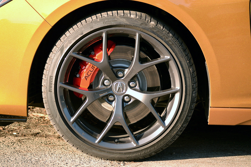 The Pirellis are the final element in a long chain of high performance improvements that distinguish the Type S from other TLX variants. For example, the Type S' front suspension utilizes control arms rather than more common MacPherson struts. A front spring rate increase of 40% works in consort with stiffer front and rear sway bars to provide a more precisely controlled ride. The stiffer body structure of the Type S also contributes to more precise handling. Acura has increased braking capability by installing 14.3 inch front brake rotors clamped by Brembo four piston calipers. Finally, the Type S benefits from a torque-vectoring all-wheel-drive system that keeps those beefy Pirellis glued to the road no matter how erratic the contact patch becomes.