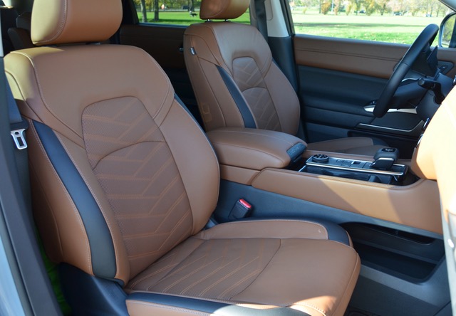 Both front-wheel (2WD) and all-wheel (4WD) drive configurations are available. 2WD models feature Drive Mode Control with five settings: Standard, Sport, Eco, Snow and Tow. Intelligent 4WD models feature Drive + Terrain Mode Control with seven settings: Standard, Sport, Eco, Snow, Sand, Mud/Rut and Tow. The Pathfinder should be a decent “soft-roader.”