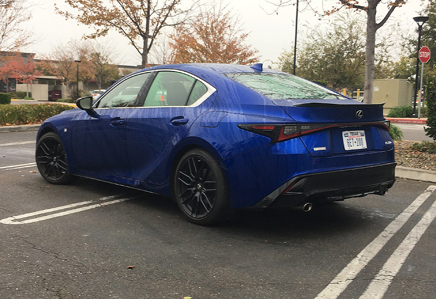 I saw a comment in a magazine that the IS 350 F Sport needs a better engine. Really? Here's some performance specs from that same magazine - 0-60 mph in 5.6 seconds, 1/4 mile in 14.2 seconds at 100 mph, and a claimed top speed of 143 mph. Not too shabby in my book. Yes there is a V8 version, the IS 500, and it is quicker. It is also more expensive, heavier, and thirstier. I'd stick with the V6 unless bragging rights are your thing. The 2022s are out, at least on paper, so why review a 2021? Because it's what is available. I suspect it has to do with the chip shortage. Essentially the '22 is the same as the '21; there are new packages and options but the basic IS is the same. And that's a good thing.