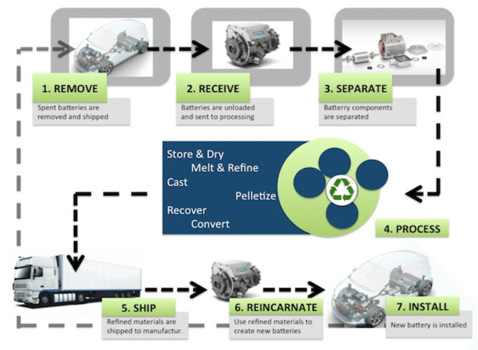 OEMs are often subject to Extended Producer Responsibility regulations, meaning that they are responsible for EV batteries when they reach their end-of-life. Therefore, it is in the OEMs' best interests to develop efficient, economic routes for waste end-of-life batteries, and the environmental credentials associated with recycling are also beneficial.