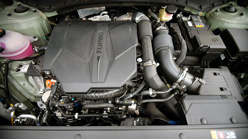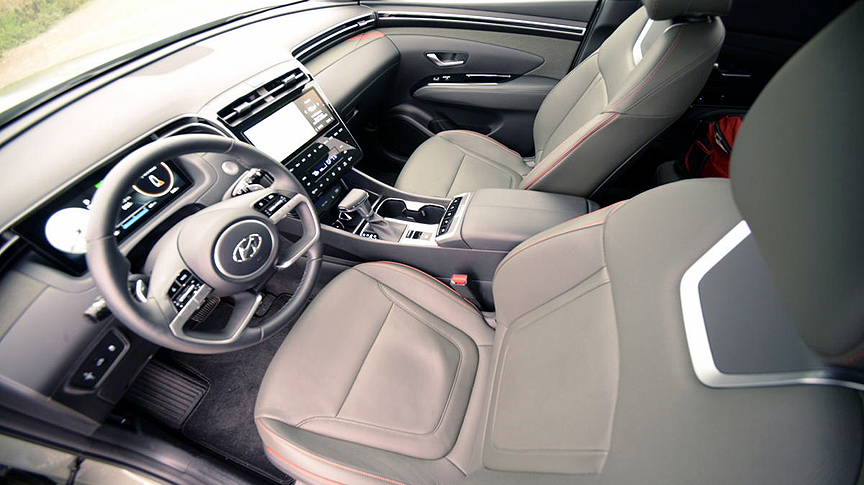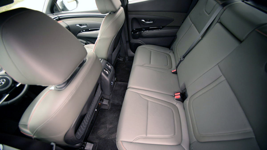 Hyundai has done a remarkable job of catering to comfort inside the airy cab. The front seats are infinitely adjustable, ventilated, and heated, as is the steering wheel. That wheel features Hyundai's patented two-level set of spokes which allow you to get a grip up high or slouch your hands down low. The rear seat lower cushions flip up with a simple strap pull to reveal a vast hidden storage bin that's perfect for holding grocery bags. Once we figured out how to delete the exceptionally annoying lane centering nanny (hold the button on the steering wheel spoke down for 3 seconds) freeway lane changes became a pleasure instead of a perpetual nuisance.