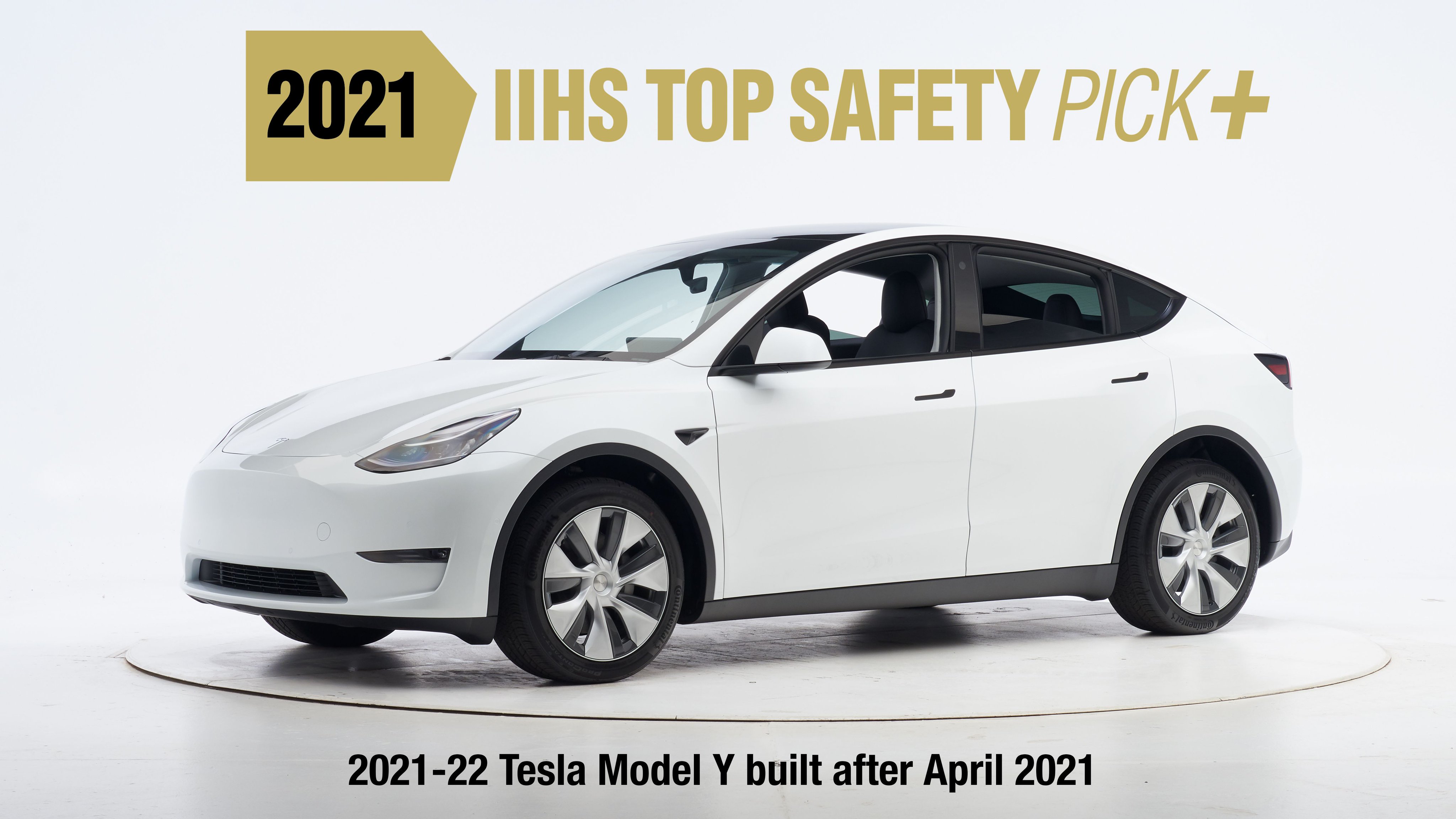 The 2021-22 Tesla Model Y, a midsize luxury SUV, qualifies for a Top Safety Pick+ award from the Insurance Institute for Highway Safety.