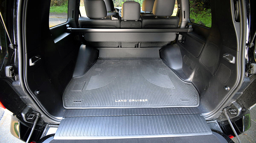 The HE is available with a two-row seating plan, or as a three row model. We never cared for the Land Cruiser's stowable third row seats which stored against the sides of the cargo area. Even folded, they took up an inordinate amount of room. The HE is the first Cruiser to offer a two row seating option (although a three-row version is still available). Unless you need the extra seating capacity, opt for the two row model, which offers a staggering 43 cubic feet of space.