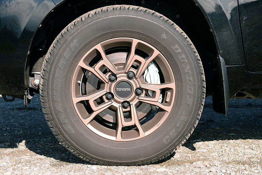Other HE enhancements include a set of 18x8J forged BBS alloy rims finished in bronze. These TRD branded rims mount 285/60R18 Dunlop AT23 Grandtrek tires that are well suited to the off road forays the Land Cruiser is capable of undertaking. The HE is also fitted with perforated leather seats, a special grill design, and a flat black Yakima rack designed to carry serious payload on the roof. The rack and the bronze wheels give the heritage Cruiser an East African Safari look that enthusiasts will love.