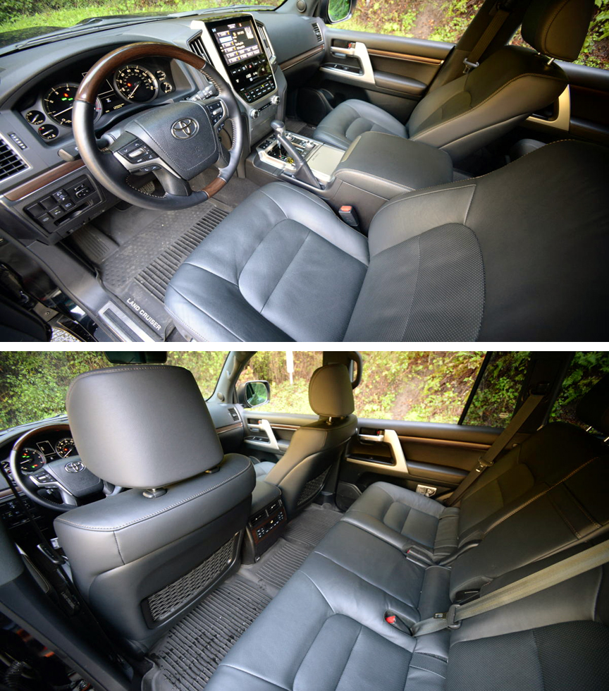The Land Cruiser is also fitted with both high and low speed settings for 4 wheel drive. Since we spent our week on pavement, we selected the 4WD High setting and left it there for the duration. This choice resulted in a comfortable but never sloppy ride quality. Traction was excellent, even when we encountered a storm front that pelted the Toyota with such a torrent of water that even its high speed wipers could barely keep up with the downpour. After that rather harrowing drive, we came away marveling at the unsurpassed competence of this all terrain, all weather bank vault. One of its strongest points is the unimpeded visibility it offers in all directions, especially to the rear, where a sweeping wiper arc always keeps the aft view clear. For safeguarding you and your family, even in the worst weather, the Land Cruiser is still the standard by which all lesser SUVs are judged.