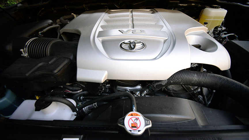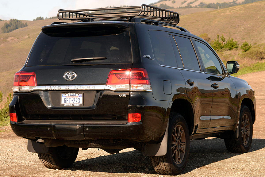 An important component in this Toyota's make-up is the 5.7 liter V8 which is connected to an 8-speed automatic transmission. Although this combination will have you frequently visiting gas stations with an overall rating of 14MPG, there's nothing you'd rather have for towing than this 381hp V8. This engine also produces 401lb.-ft. of torque, which accounts for its monumental tow rating of 8,200lbs. The all aluminum V8 also propels the Cruiser to staggeringly fast acceleration times, considering it weighs in at 5,851 pounds. This bad boy will run from 0-60mph in 7 seconds flat, and cruise through the standing start quarter mile in 15.4 seconds at 91mph. So if you tow a sizeable boat or motor home, the Land Cruiser's V8 engine, ladder frame chassis, and complex 4 wheel drive system will ensure that both you and your package will safely get where you're going.