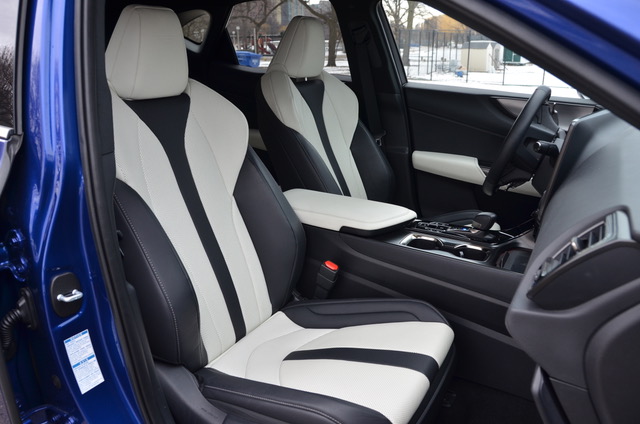 The interior is nicely appointed, very well laid out, and has a more contemporary instrument panel. The large, center-mounted screen, angled toward the driver, is within easy reach. This is a significant departure from other Lexus models that feature a central display mounted far from the driver with a touchpad on the console. Kudos to Lexus. The 10-way adjustable, well-bolstered two-tone seats proved both comfortable and supportive. I liked the interior push button door handles, but my wife thought otherwise.