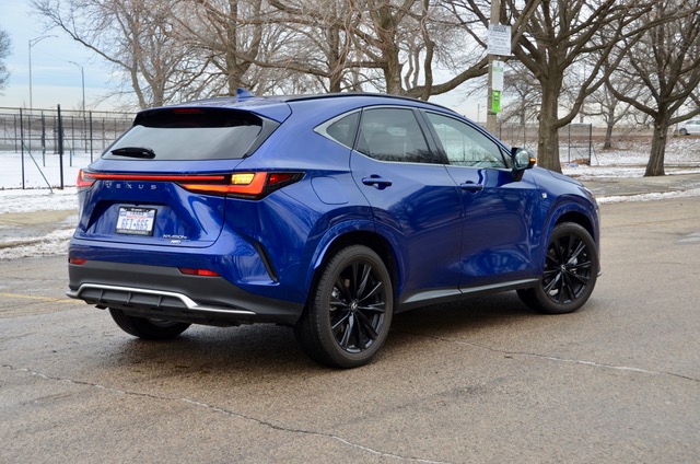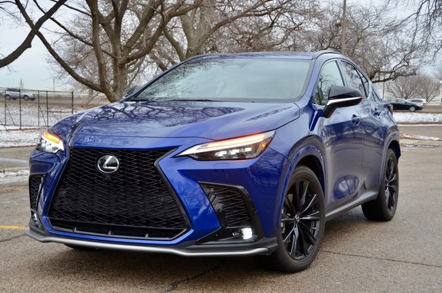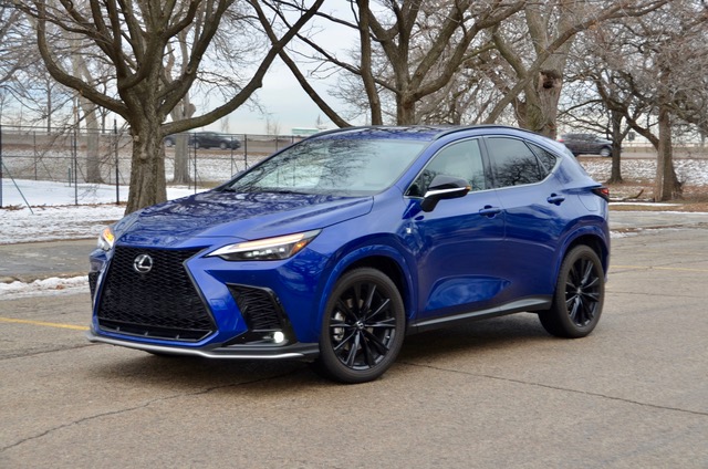 There’s an F Sport trim available on the NX 350 and NX 450h+ that include unique front and rear bumpers and grille, 20-inch gloss black wheels, adaptive suspension, black exterior trim, aluminum interior trim, bolstered front seats, head-up display and additional items.
