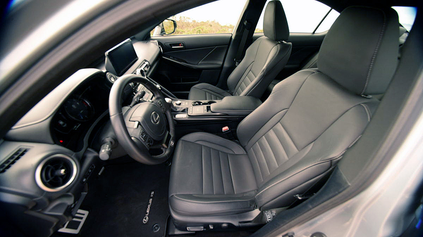 Ensconced in form fitting F Sport bolstered race style seats, you meld with this machine to become the best driver you can be. Thanks to a sensible dash layout where all controls are hard button and clearly labeled, driving fast in the IS 500 becomes instinctual. Unlike so many au-courant interior layouts that depend on haptic feedback and magic intuition, this Lexus is laid out for real people to control without taking their eyes off the road. The paddle shifted gearbox can be manually operated with consummate ease. When you direct the IS to do something, it acquiesces instantly. In an automotive world where new cars are programmed to override your instructions, the IS 500 does just the opposite. It obeys your directions. What a refreshing concept.
