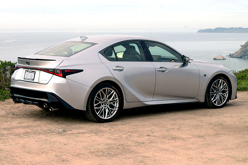 With apologies to Thomas Wolfe, you can go home again, as Lexus has just proved. For 2022, they have resurrected the pivotal IS F Sport of 2008, an ultra high performance compact sedan that forever altered the trajectory of Lexus from a builder of luxury limousines to a builder of luxury sports cars. A dozen years ago, the IS F packed a 5 liter V8 into a mid-size sedan that sold for $59,010. Now, more than a decade later, Lexus has retrieved their seminal formula for speed with the 2022 IS 500 F SPORT Performance. F SPORT Performance is a new category for Lexus, one step below full F SPORT status. The new IS 500 carries a bargain base price of just $61,000. Like its 2008 predecessor, the 2022 version utilizes a 5 liter V8 driving the rear wheels through an 8-speed automatic transmission. Although curb weight has increased from 3,500lbs to 3,969lbs, horsepower has also increased from 416hp to 472hp. Power-to-weight ratio thus remains phenomenal at 8.4lbs/hp. Bottom line, the new IS 500 is one of the quickest cars on the road today, capable of posting a 0-60mph run in 4.2 seconds and scalding through the standing start quarter mile in 12.8 seconds at 112mph.