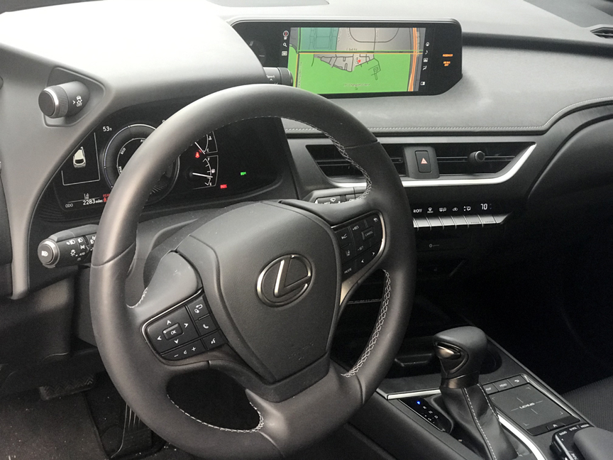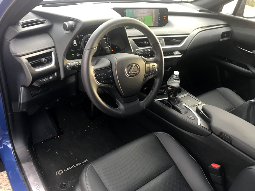 The Lexus UX has a comfortable, if busy, interior, with unremarkable materials, and a brash, angular dash – a lot of visual lines going a lot of different directions. A visual scan while driving at night reveals more little lights and icons than you can count. We expect a learning curve when introduced to a new car but this one is a bit more onerous than most. We can think of this as the entry-level Lexus - high level of content and functionality, but more modest luxury touches.