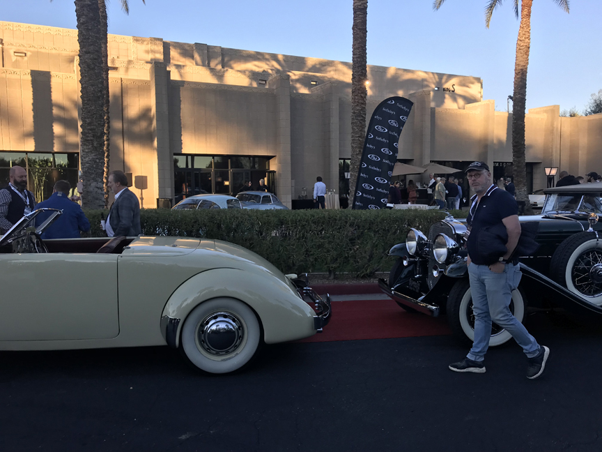 We counted six classic and collector car auctions in the Scottsdale area this year. Biggest, loudest, and of longest standing is the now-50-year-old Barrett-Jackson presented throughout a sprawling complex of tents, hard buildings, and public spaces. The most subdued is the Gooding & Company Auction that goes on without a live audience but with cars displayed at an airport hangar. RM-Sotheby’s purveys really high-end cars in an elegant hotel-and-spa setting in Phoenix. The former Silver Auction, now called MAG (Motorsport Auction Group), at Fort McDowell is the place to buy the more modest, and often most quirky, of collector cars. Across town, Bonhams and Worldwide compete for attention with mostly high-end cars. We had time to visit three to get the flavor and soak up the ambiance of each, so we can give you, our readers, a sense of the action.