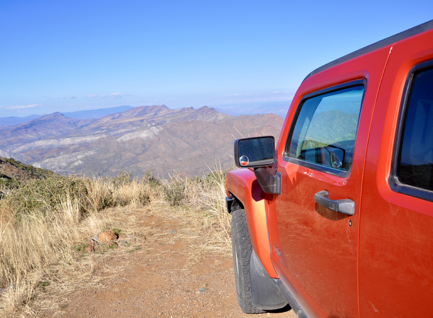 Scottsdale encompasses the northeast side of the Phoenix urban sprawl. Further to the north and east are a couple little artsy communities, then wilderness. We met up there with one of our old compatriots and took her Hummer H3 out past where the pavement ends northeast of Carefree, then up a rocky road to a 360-degree lookout where we could soak up the afternoon light and enjoy the color of the unspoiled desert, a reservoir in the next valley, and a crisp desert wind. We’re in the northern reaches of the Sonoran Desert where saguaro cactus, unique to the region, help define the flora.
