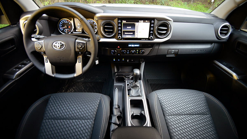 Our test truck also included Parking Sonar. This feature, which costs $1,710 extra, also provides navigation displayed on an 8 inch touchscreen. Although the command driving position of the raised TE Tacoma affords excellent visual sightlines, this vehicle is long enough and bulky enough to make sonar parking alerts a virtual necessity. For the same reason, the $600 additional expense for a Technology Package that adds a blind-spot monitor with rear cross traffic alert is a smart investment because you can't see the lower corners of the bed from the driver's seat.